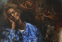 techn. mieszana; płótno naklejone na płytę; werniks błyszczący