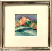 akryl na tekturze, oprawa za szkłem, obraz 10x10, rama 20x20 cm