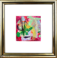 akryl na tekturze, oprawa za szkłem, obraz 10x10 cm, rama ze szkłem 20x20 cm, sygnowane