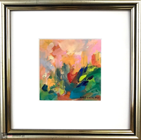 akryl na tekturze, oprawa za szkłem, obraz 10x10 cm, rama ze szkłem 20x20 cm, sygnowane