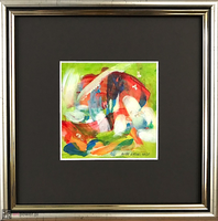akryl na tekturze, oprawa za szkłem, obraz 10x10 cm, rama ze szkłem 20x20 cm, sygnowane