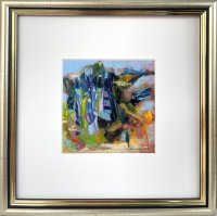 akryl na tekturze, oprawa za szkłem, obraz 10x10 cm, rama złota ze szkłem 20x20 cm, sygnowane