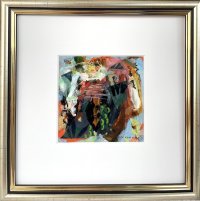akryl na tekturze, oprawa za szkłem, obraz 10x10 cm, rama złota ze szkłem 20x20 cm, sygnowane