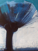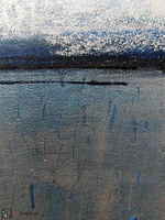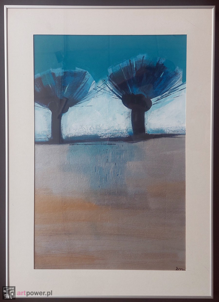 akryl na tekturze, oprawa: kremowe passpartou, srebrna alurama