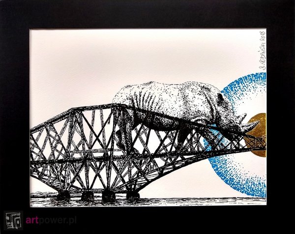 Tusz, złoto, akryl na papierze, bez oprawy, praca w passe partout 40x50