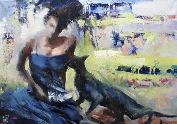 olej na płótnie, brak oprawy, boki pomalowane w kolorze pracy.