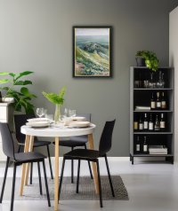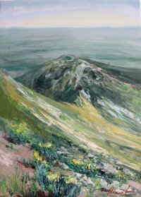Rozległy pejzaż górski, w którym linia horyzontu staje się miejscem spotkania ciszy, światła i przestrzeni. Obraz o wolności spojrzenia i wewnętrznej równowadze.
