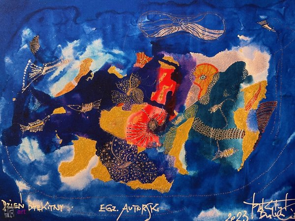 grafika w technice żel-art, oprawiona w białe passe partout