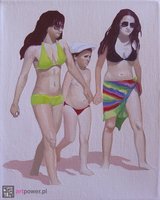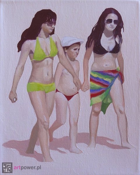 „W długo rozwijanej serii obrazów Julita powraca w różnych ujęciach do interpretowania jednej potocznej sytuacji- nagie dzieci bawiące się nad brzegiem morza.