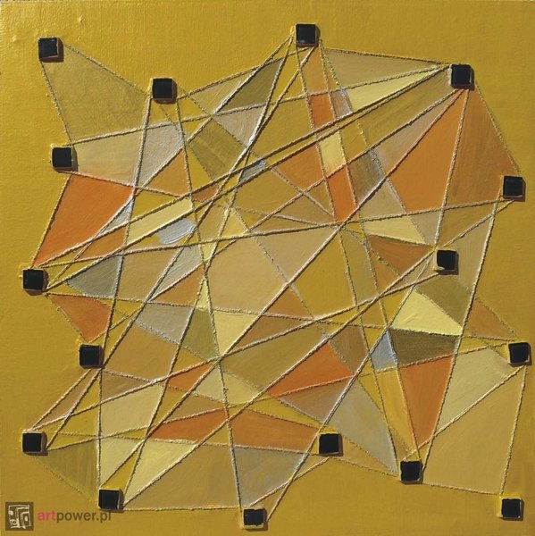 Obraz akrylowy, technika mieszana, podłoże płyta mdf, krawędzie pogrubione do 16 mm, przygotowany do powieszenia w dowolnej pozycji bez potrzeby ramy i dodatkowych mocowań, fakturalny, boki zamalowane w tonacji obrazu, werniksowany, sygnowany