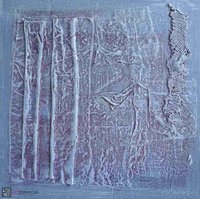 Obraz akrylowy, technika mieszana, podłoże płyta, kolaż, przygotowany do powieszenia w dowolnej pozycji bez potrzeby ramy i dodatkowych mocowań, fakturalny, boki zamalowane w tonacji obrazu, werniksowany, sygnowany