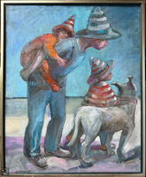 olej na płótnie, oprawiony w podwóje ramy - srebrną z kolorową wkładką