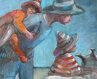 * * * Myślę, że Małgorzata Maćkowiak wierzy w wartości ponadczasowe malarstwa. W uwzględnienie w obrazie egzystencji światła i światłocienia, i wiązanie z tym wartości barwnych. Ta wiara, to indywidualny kształt plamy malarskiej i własne w sposobie dotknięcia pędzla, które można by porównywać do charakteru pisma. Malarstwo takie wymaga wytrawności oka i sprawności warsztatowej. Należy dodać, iż odwołując się do metody klasycznej, malarstwo to swobodnie operuje wszystkimi barwami pryzmatu, zachowując jednak swoje preferencje w ciepłych gamach kontrastowanych do srebrzystych szarości budujących światło w obrazach i dodających im charakterystycznego blasku. Taka opozycja stanowi często dominantę obrazu i poprzez swoją dźwięczność w jakimś sensie staje się malarską wizytówką autorki. Pozostawmy zatem widzowi przyjemność smakowania i rozszyfrowywania wątków tematycznych prezentowanych na wystawie prac i osiągania tą drogą możliwie, mam nadzieję, najpełniejszej satysfakcji. (Roman Łaciak, Katalog 2007)* * * Malarstwo Małgorzaty Maćkowiak nie jest do końca z tego świata, któremu - nie zawsze dobrowolnie - przyglądamy się na co dzień. To taka zdrapka, pod którą kryje się bonus - rzeczywistość bardziej świetlista i moralna, w którym dla wszystkich chętnych wystarczy bezkolizyjnych ścieżek okalających wybujałe przestrzenie. Mimo całej bajkowości przedstawień, nie jest to lukrowanie świata i pozbawianie go istotnych pytań, tak jak w aspekcie fizycznym - nie jest to papka pigmentów z tubki, do których przyzwyczaiła nas współczesność. Prawdziwie solidnym fundamentem, wielką wartością malarstwa Małgosi Maćkowiak, jest fakt, że zanim odnajdziemy w nim anegdotę i własną narrację, to widzimy kawałek płótna pokrytego pulsującym laserunkami, szlachetnym kolorem i chcemy na nie patrzeć bez końca. A za to przecież - przede wszystkim - kochamy dobre malarstwo. (Katarzyna Krzykawska, 2006)