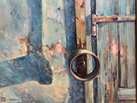 olej na płótnie, oprawa: płaska, drewniana rama o szerokości 2 cm. Obraz wystawiany w 2008 r. na Zamku Lubelskim.